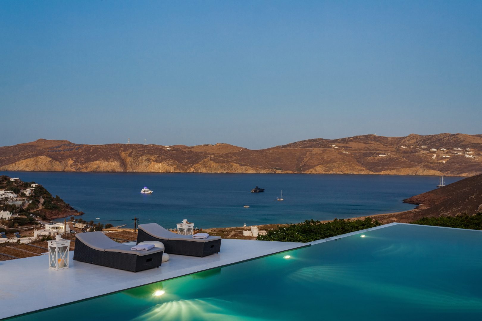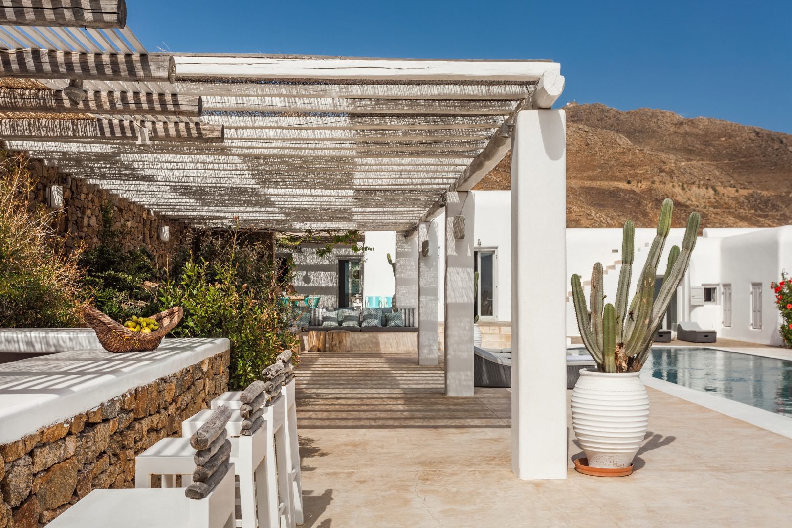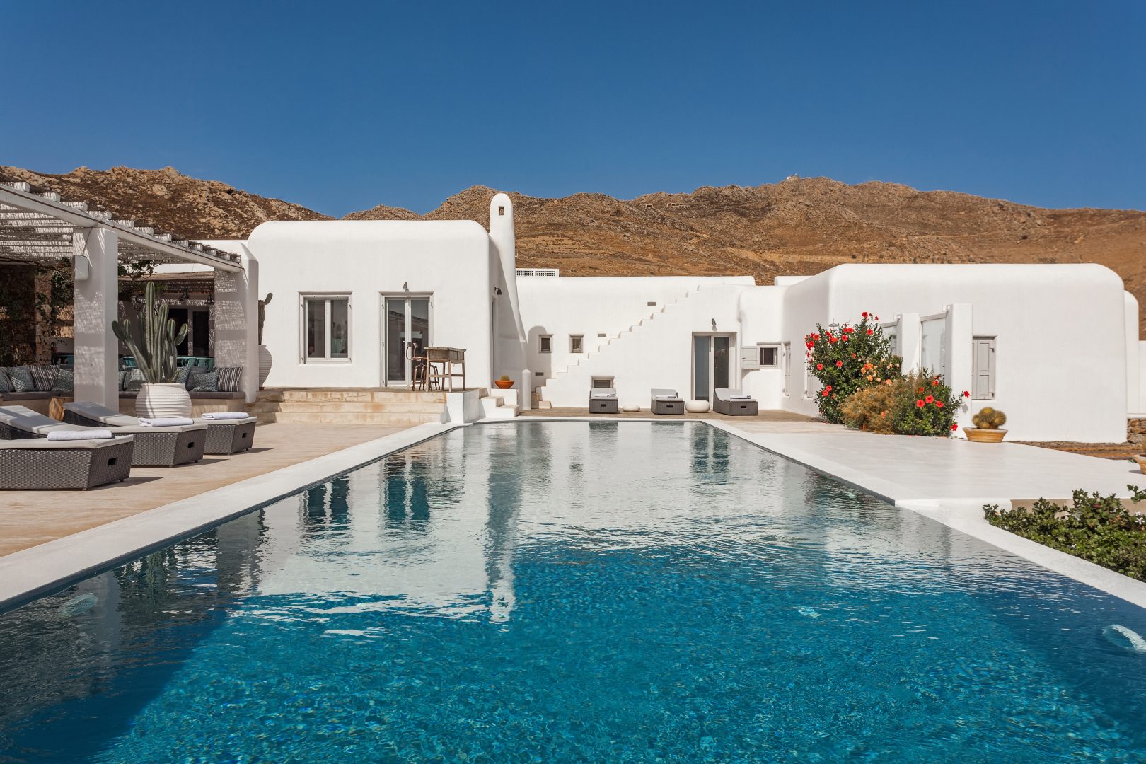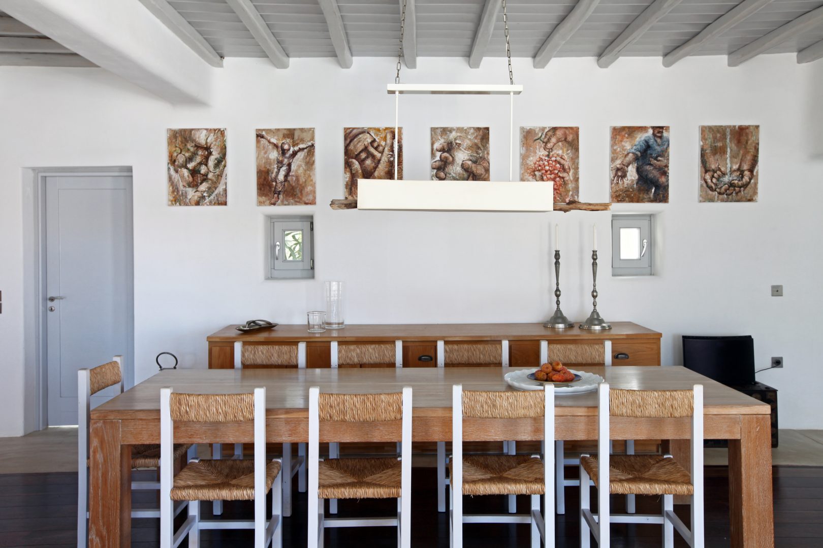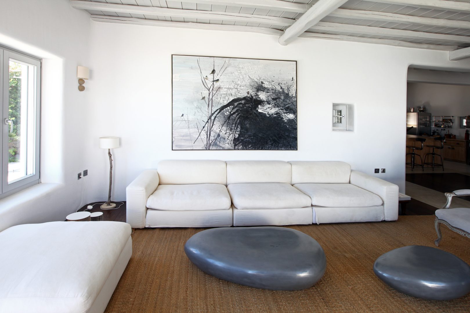 ממוקם באופן אידיאלי במרחק הליכה מפנורמוס, אחד החופים המובילים של האי, ורק נסיעה קצרה מהעיירה מיקונוס, וילה זו היא מקום מפלט משפחתי מפואר עם נופים מדהימים ואווירת אי מרגיעה בסופו של דבר מהדהד את לשון המגורים, הבית קיבל צורה אורגנית ונצבע בלבן כדי לשקף את קרני השמש, ויצר ניגוד חד עם השקיעה העקרה שלו. מקומות מנוחה נעימים, בריכת אינסוף נאה ושולחן אוכל כפרי - כולם עם נוף פנורמי של המפרץ - יוצרים את הסצנה לאירוח בחוץ. במפלס התחתון יש גם מגרש משחקים הפנים מפואר ובו בזמן אינטימי, כולל שילוב לא יומרני של כפרי-שיק ועכשווי. יצירות מעצבים וחפצי אמנות שנבחרו ביד מעלים את האווירה הנינוחה של חללי המגורים. המטבח הפתוח משרת פינת אוכל נוחה. בחדרי השינה לא חסר לא מקום ולא אור. הקירות מצוידים בכמה חלונות שמכניסים פנימה גם את השמש וגם את הנופים. מיטות אפיריון על רקע פלטה אלגנטית בצבע לבן יוצרות אווירה מפנקת. המגורים כוללים דירת אירוח המושלמת לילדים גדולים יותר ובית בריכה עם חדר שינה זוגי