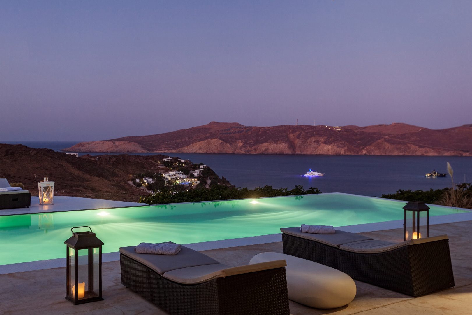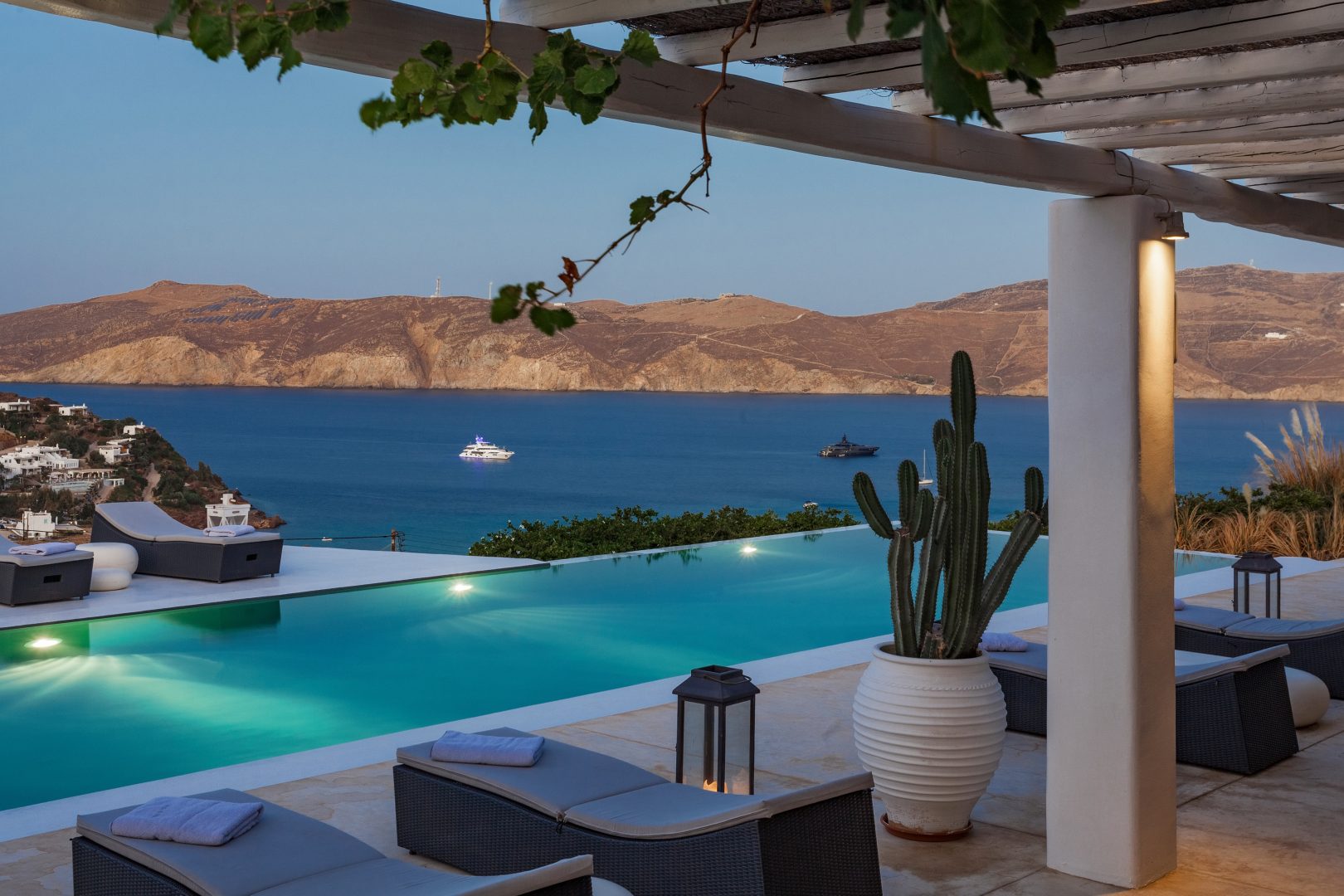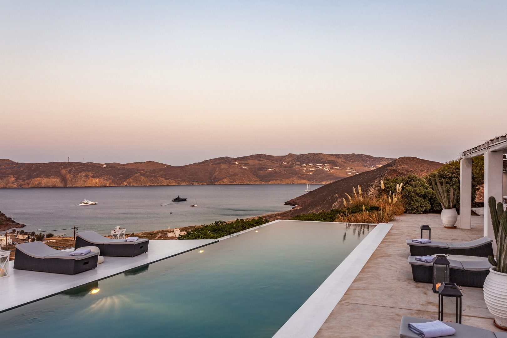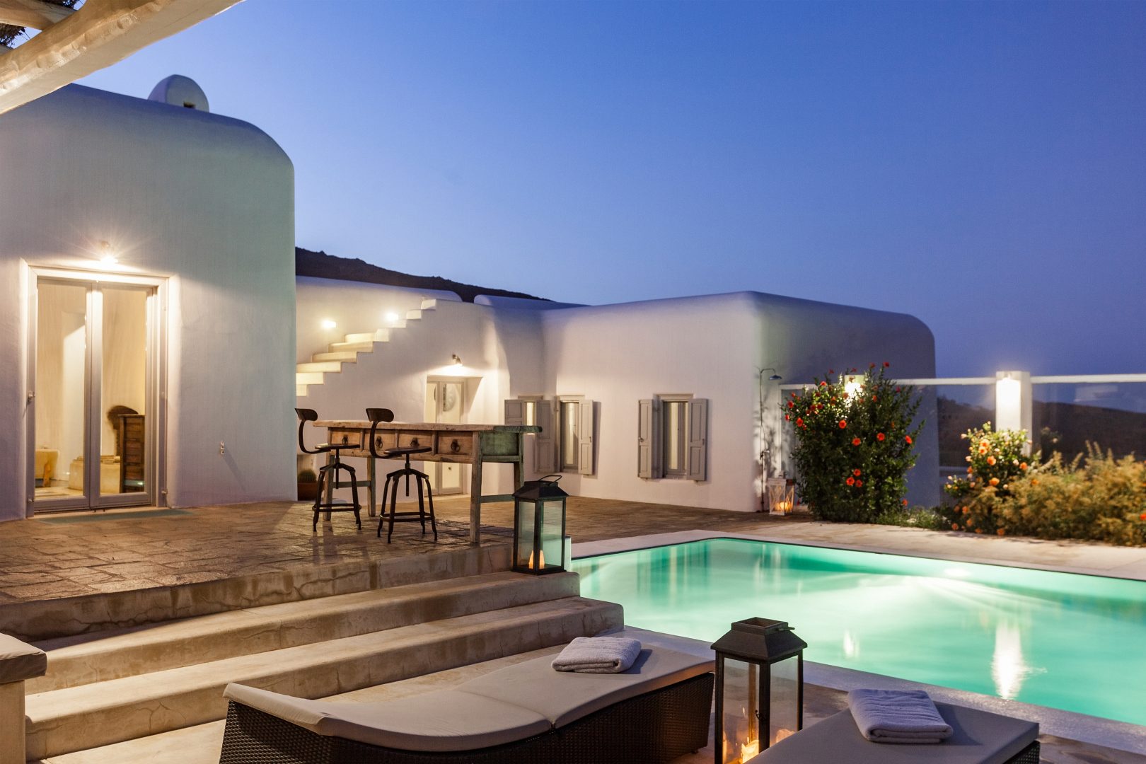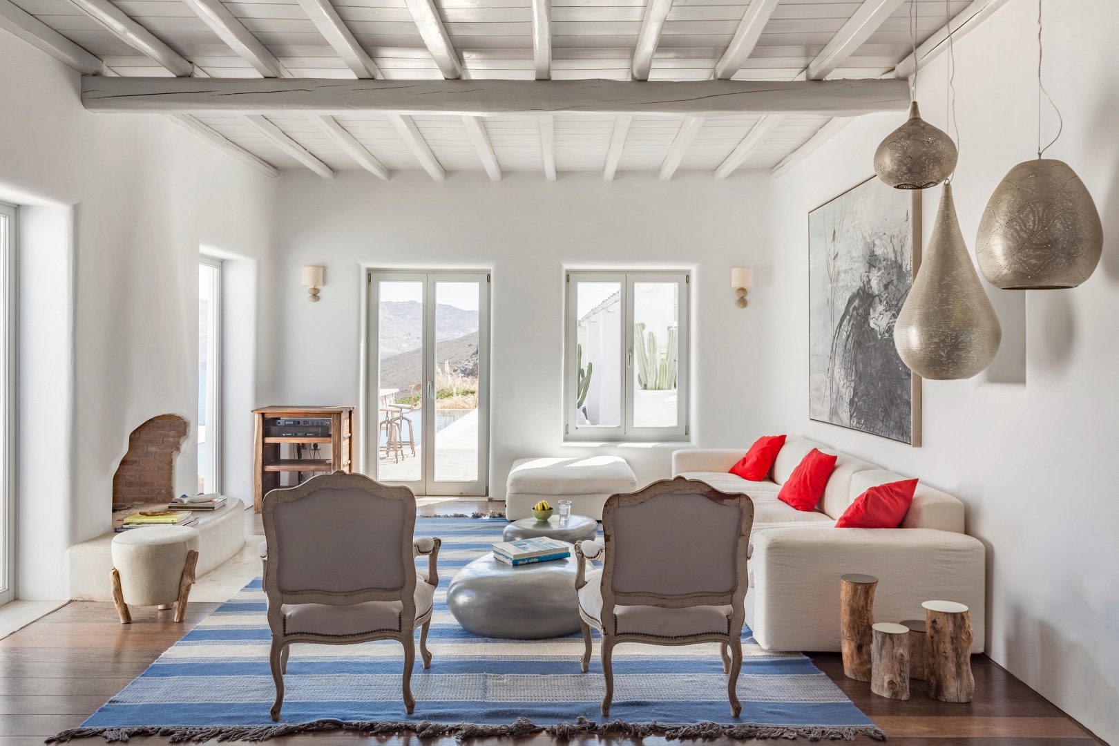 ממוקם באופן אידיאלי במרחק הליכה מפנורמוס, אחד החופים המובילים של האי, ורק נסיעה קצרה מהעיירה מיקונוס, וילה זו היא מקום מפלט משפחתי מפואר עם נופים מדהימים ואווירת אי מרגיעה בסופו של דבר מהדהד את לשון המגורים, הבית קיבל צורה אורגנית ונצבע בלבן כדי לשקף את קרני השמש, ויצר ניגוד חד עם השקיעה העקרה שלו. מקומות מנוחה נעימים, בריכת אינסוף נאה ושולחן אוכל כפרי - כולם עם נוף פנורמי של המפרץ - יוצרים את הסצנה לאירוח בחוץ. במפלס התחתון יש גם מגרש משחקים הפנים מפואר ובו בזמן אינטימי, כולל שילוב לא יומרני של כפרי-שיק ועכשווי. יצירות מעצבים וחפצי אמנות שנבחרו ביד מעלים את האווירה הנינוחה של חללי המגורים. המטבח הפתוח משרת פינת אוכל נוחה. בחדרי השינה לא חסר לא מקום ולא אור. הקירות מצוידים בכמה חלונות שמכניסים פנימה גם את השמש וגם את הנופים. מיטות אפיריון על רקע פלטה אלגנטית בצבע לבן יוצרות אווירה מפנקת. המגורים כוללים דירת אירוח המושלמת לילדים גדולים יותר ובית בריכה עם חדר שינה זוגי
