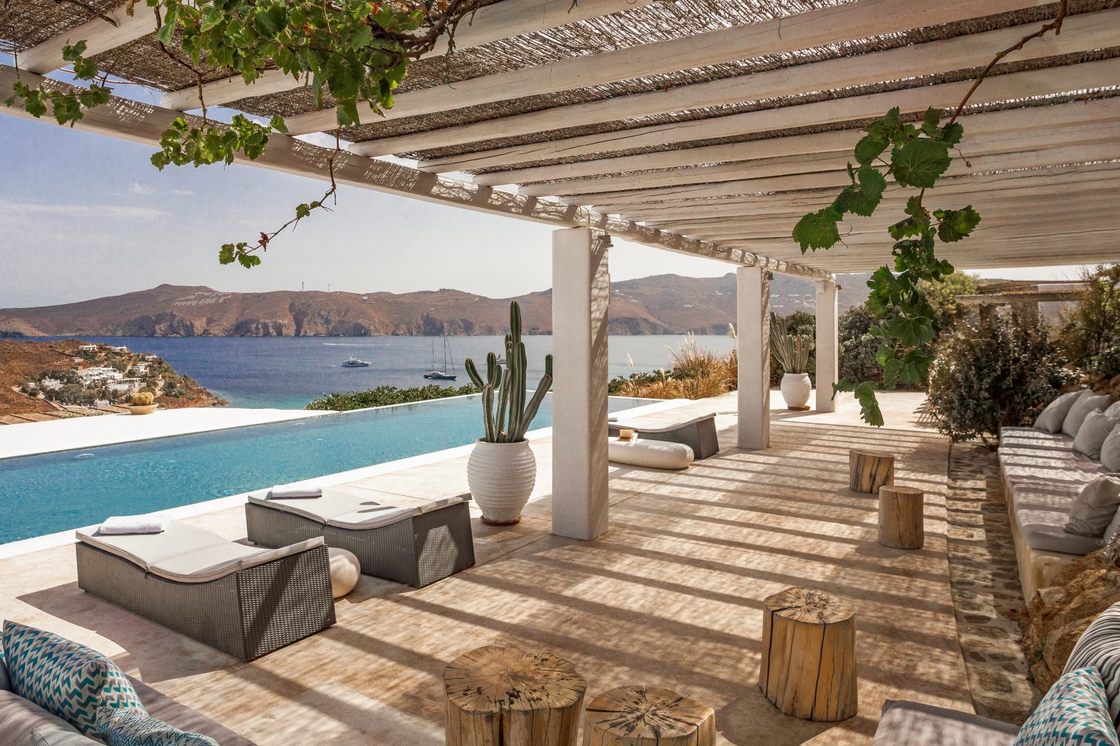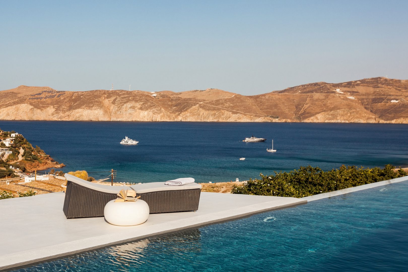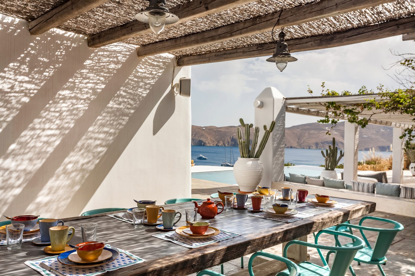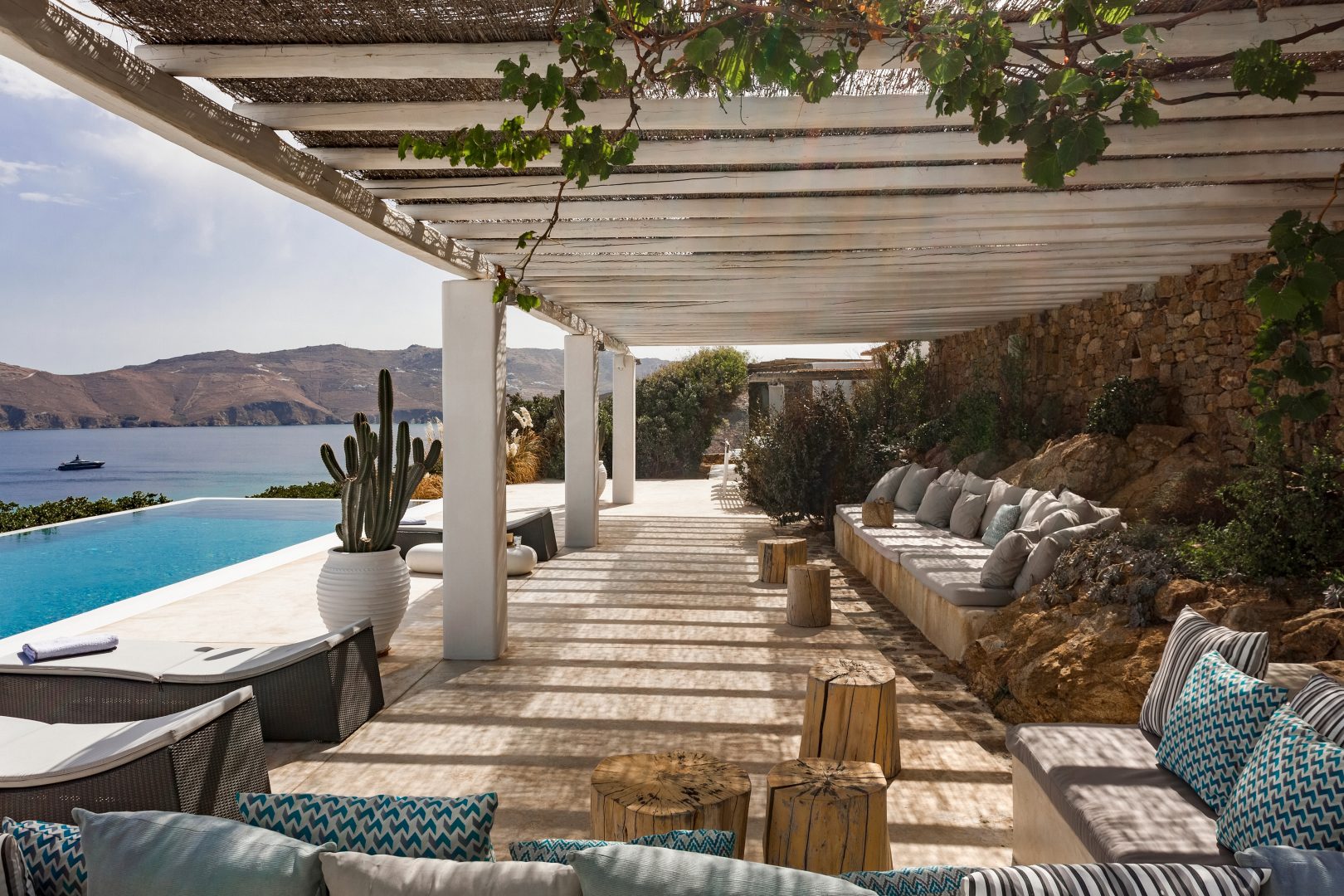 ממוקם באופן אידיאלי במרחק הליכה מפנורמוס, אחד החופים המובילים של האי, ורק נסיעה קצרה מהעיירה מיקונוס, וילה זו היא מקום מפלט משפחתי מפואר עם נופים מדהימים ואווירת אי מרגיעה בסופו של דבר מהדהד את לשון המגורים, הבית קיבל צורה אורגנית ונצבע בלבן כדי לשקף את קרני השמש, ויצר ניגוד חד עם השקיעה העקרה שלו. מקומות מנוחה נעימים, בריכת אינסוף נאה ושולחן אוכל כפרי - כולם עם נוף פנורמי של המפרץ - יוצרים את הסצנה לאירוח בחוץ. במפלס התחתון יש גם מגרש משחקים הפנים מפואר ובו בזמן אינטימי, כולל שילוב לא יומרני של כפרי-שיק ועכשווי. יצירות מעצבים וחפצי אמנות שנבחרו ביד מעלים את האווירה הנינוחה של חללי המגורים. המטבח הפתוח משרת פינת אוכל נוחה. בחדרי השינה לא חסר לא מקום ולא אור. הקירות מצוידים בכמה חלונות שמכניסים פנימה גם את השמש וגם את הנופים. מיטות אפיריון על רקע פלטה אלגנטית בצבע לבן יוצרות אווירה מפנקת. המגורים כוללים דירת אירוח המושלמת לילדים גדולים יותר ובית בריכה עם חדר שינה זוגי