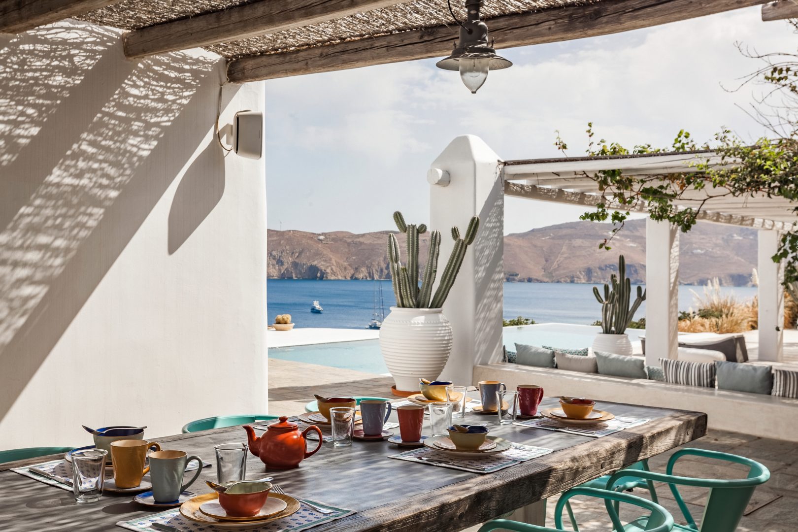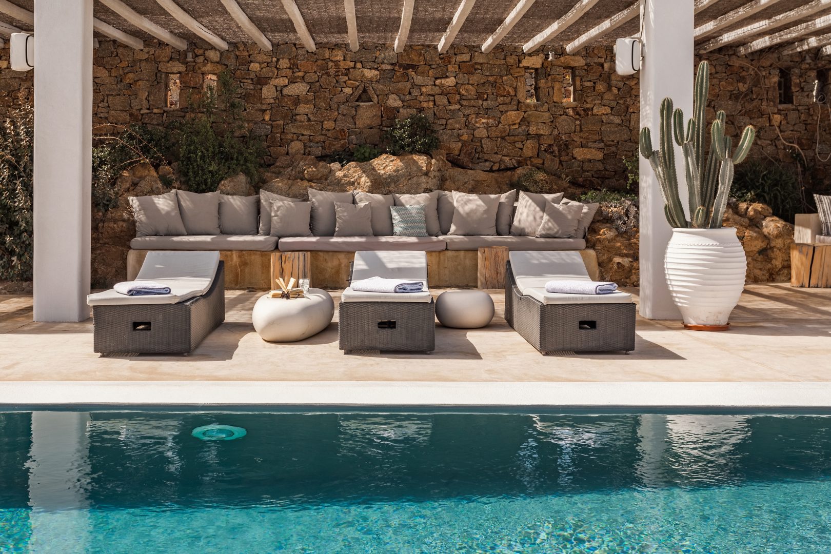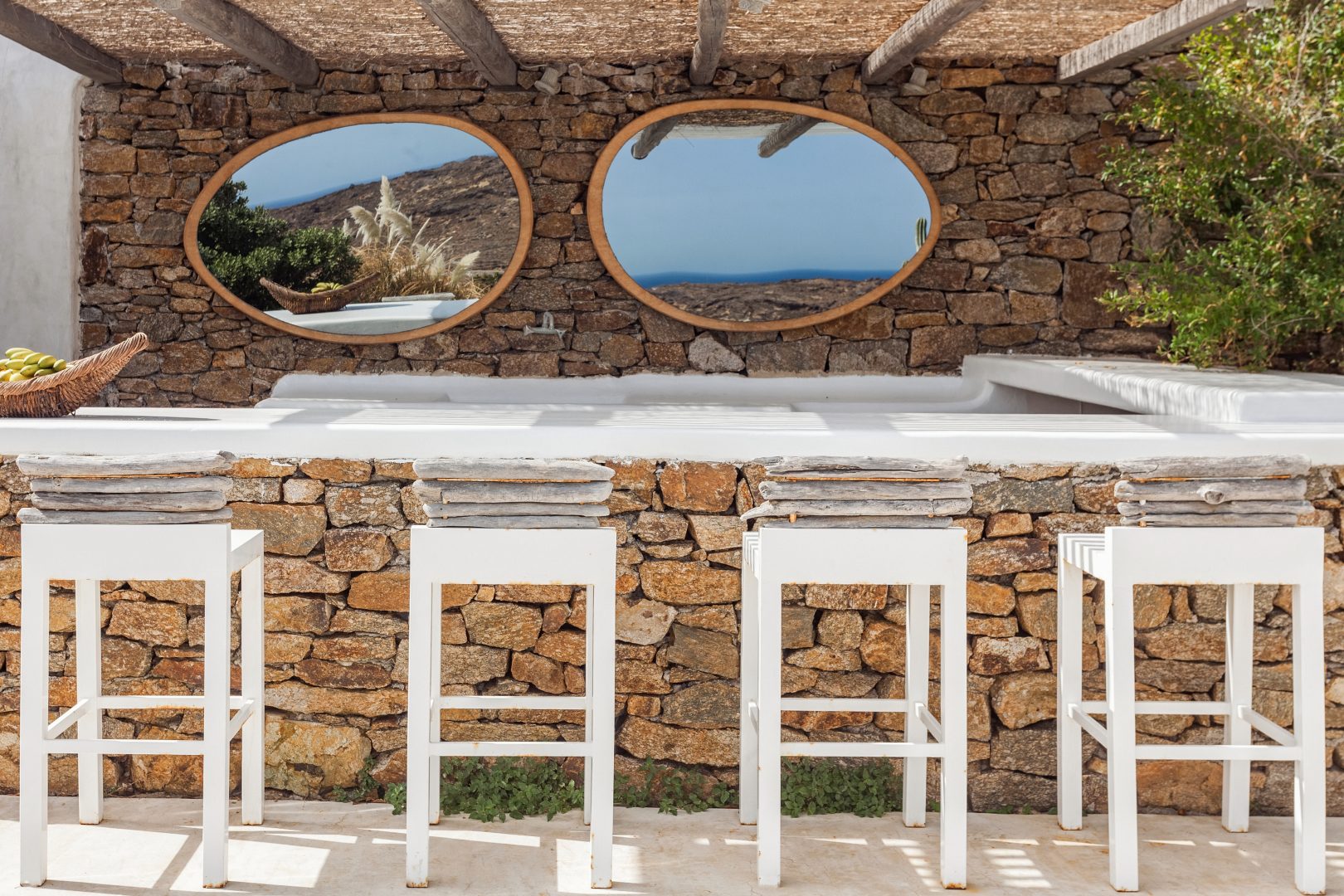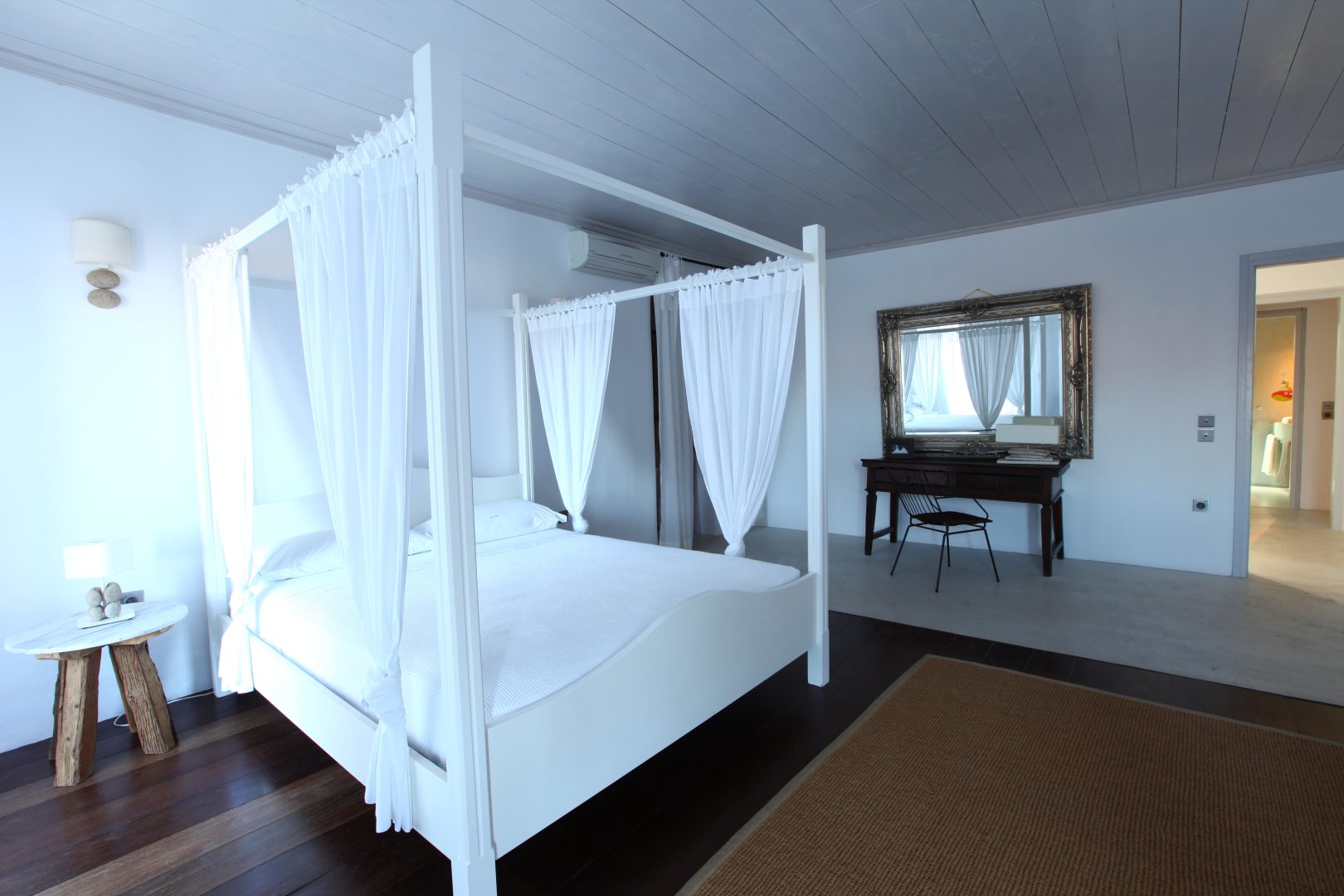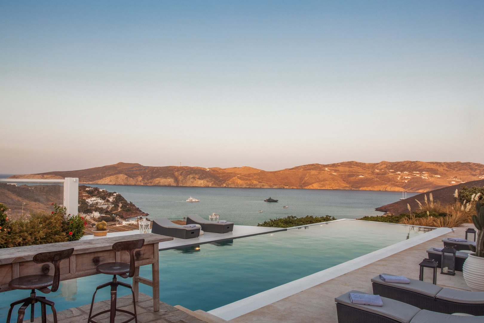 ממוקם באופן אידיאלי במרחק הליכה מפנורמוס, אחד החופים המובילים של האי, ורק נסיעה קצרה מהעיירה מיקונוס, וילה זו היא מקום מפלט משפחתי מפואר עם נופים מדהימים ואווירת אי מרגיעה בסופו של דבר מהדהד את לשון המגורים, הבית קיבל צורה אורגנית ונצבע בלבן כדי לשקף את קרני השמש, ויצר ניגוד חד עם השקיעה העקרה שלו. מקומות מנוחה נעימים, בריכת אינסוף נאה ושולחן אוכל כפרי - כולם עם נוף פנורמי של המפרץ - יוצרים את הסצנה לאירוח בחוץ. במפלס התחתון יש גם מגרש משחקים הפנים מפואר ובו בזמן אינטימי, כולל שילוב לא יומרני של כפרי-שיק ועכשווי. יצירות מעצבים וחפצי אמנות שנבחרו ביד מעלים את האווירה הנינוחה של חללי המגורים. המטבח הפתוח משרת פינת אוכל נוחה. בחדרי השינה לא חסר לא מקום ולא אור. הקירות מצוידים בכמה חלונות שמכניסים פנימה גם את השמש וגם את הנופים. מיטות אפיריון על רקע פלטה אלגנטית בצבע לבן יוצרות אווירה מפנקת. המגורים כוללים דירת אירוח המושלמת לילדים גדולים יותר ובית בריכה עם חדר שינה זוגי
