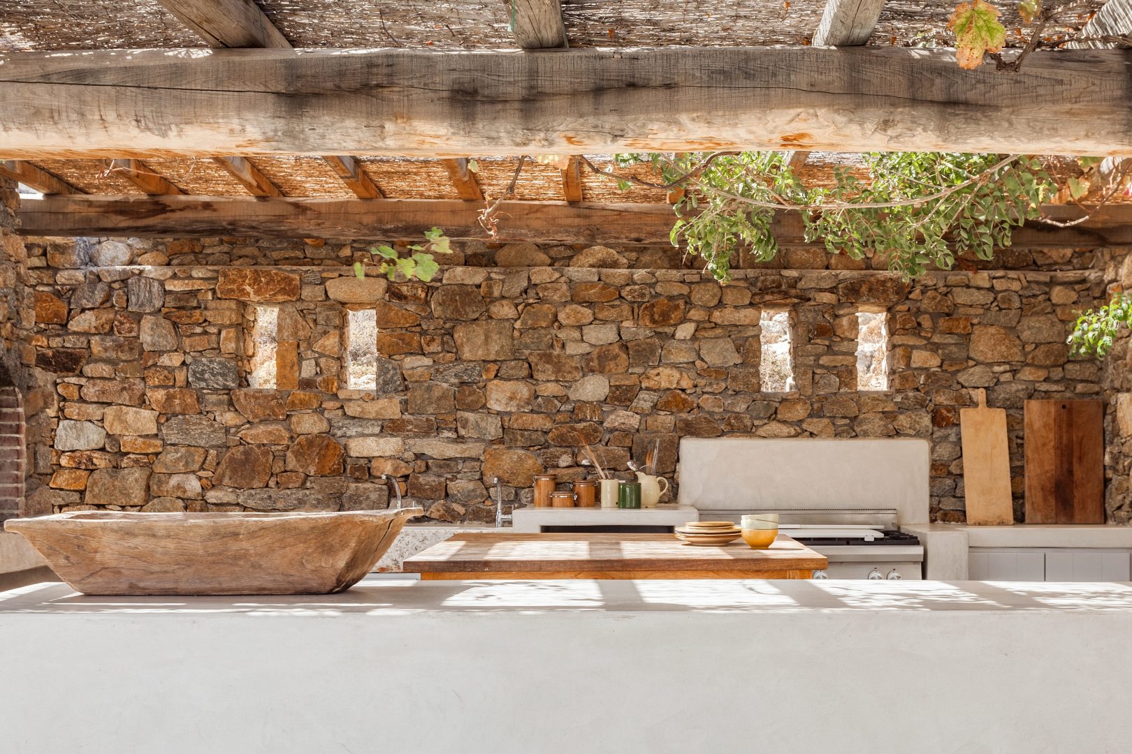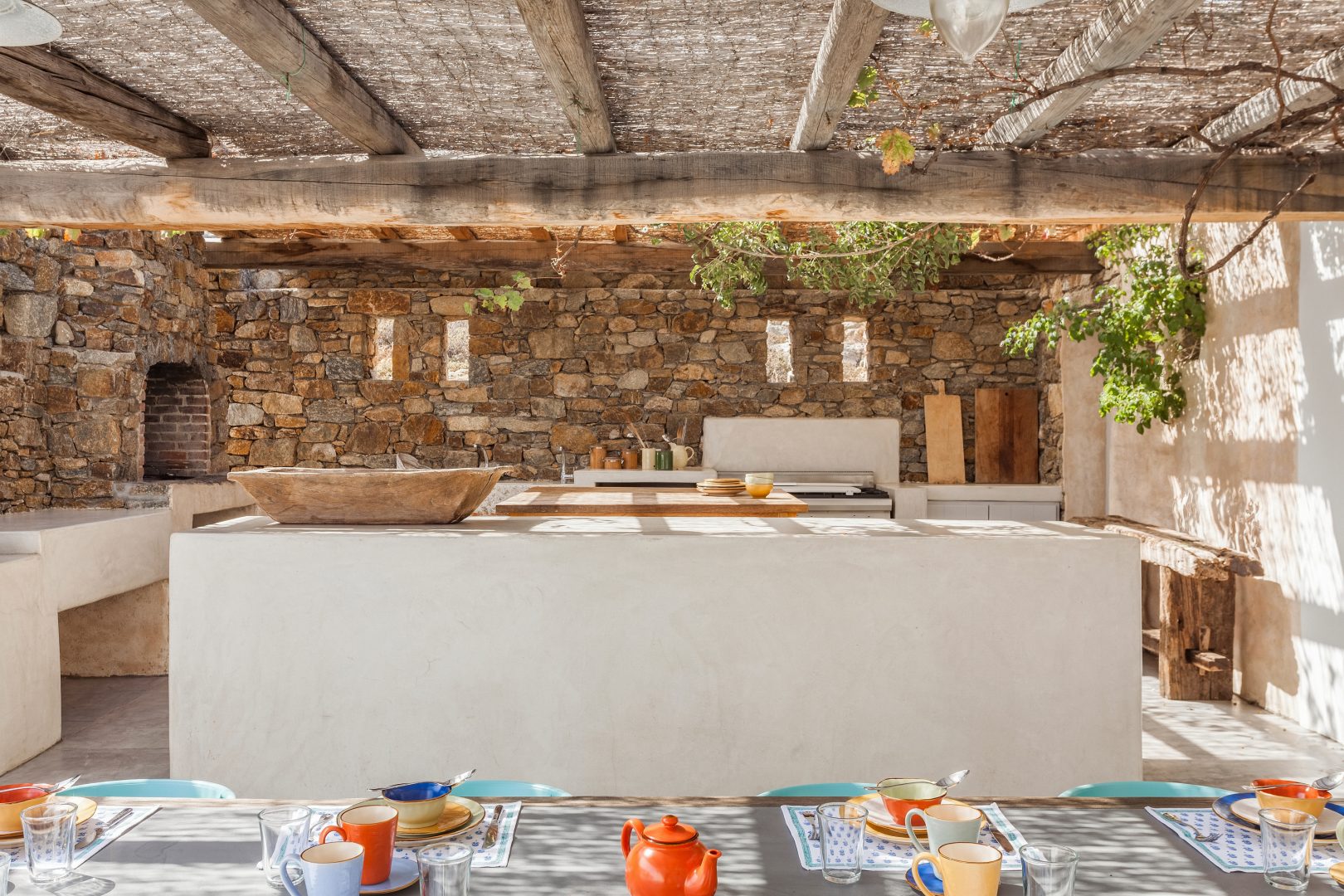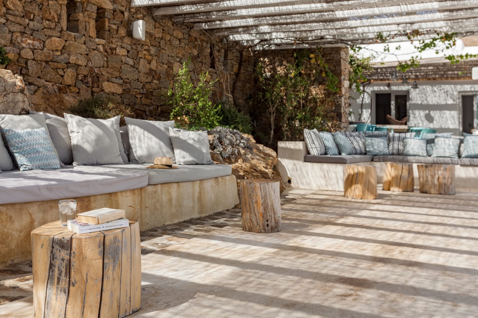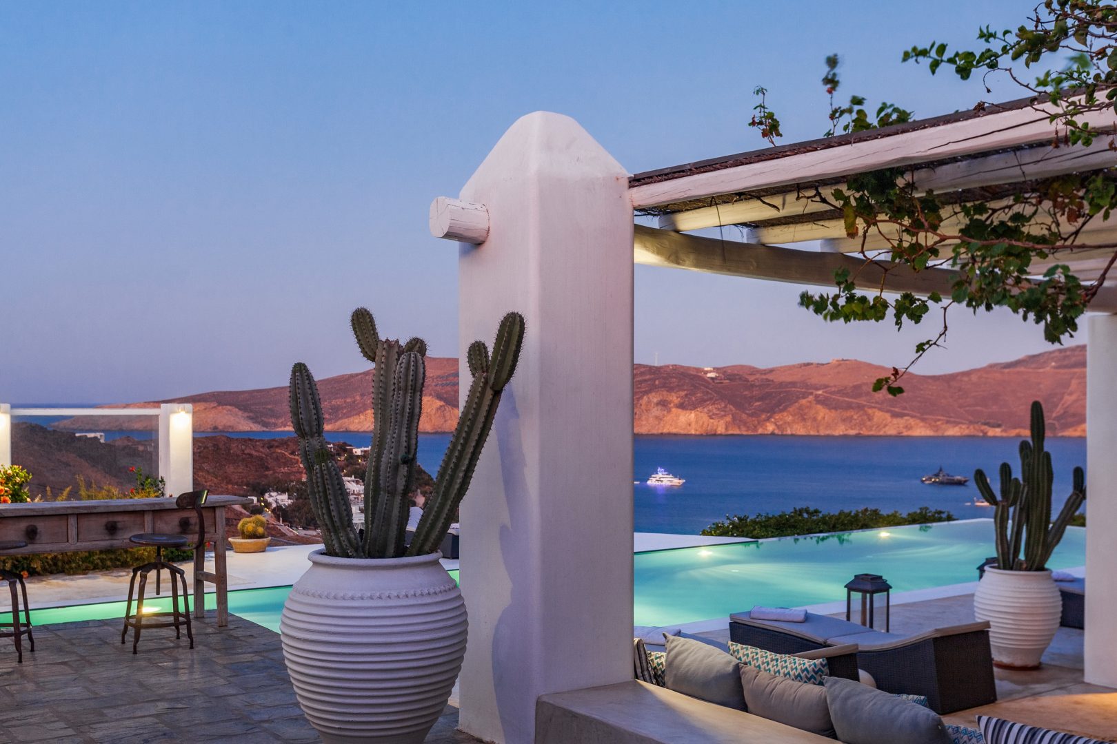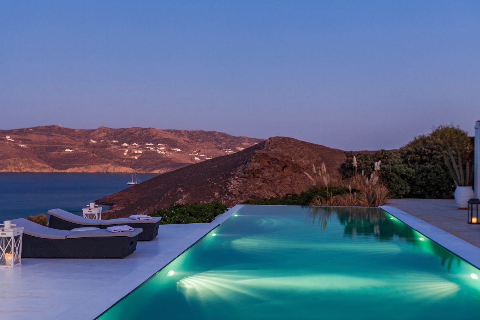 ממוקם באופן אידיאלי במרחק הליכה מפנורמוס, אחד החופים המובילים של האי, ורק נסיעה קצרה מהעיירה מיקונוס, וילה זו היא מקום מפלט משפחתי מפואר עם נופים מדהימים ואווירת אי מרגיעה בסופו של דבר מהדהד את לשון המגורים, הבית קיבל צורה אורגנית ונצבע בלבן כדי לשקף את קרני השמש, ויצר ניגוד חד עם השקיעה העקרה שלו. מקומות מנוחה נעימים, בריכת אינסוף נאה ושולחן אוכל כפרי - כולם עם נוף פנורמי של המפרץ - יוצרים את הסצנה לאירוח בחוץ. במפלס התחתון יש גם מגרש משחקים הפנים מפואר ובו בזמן אינטימי, כולל שילוב לא יומרני של כפרי-שיק ועכשווי. יצירות מעצבים וחפצי אמנות שנבחרו ביד מעלים את האווירה הנינוחה של חללי המגורים. המטבח הפתוח משרת פינת אוכל נוחה. בחדרי השינה לא חסר לא מקום ולא אור. הקירות מצוידים בכמה חלונות שמכניסים פנימה גם את השמש וגם את הנופים. מיטות אפיריון על רקע פלטה אלגנטית בצבע לבן יוצרות אווירה מפנקת. המגורים כוללים דירת אירוח המושלמת לילדים גדולים יותר ובית בריכה עם חדר שינה זוגי
